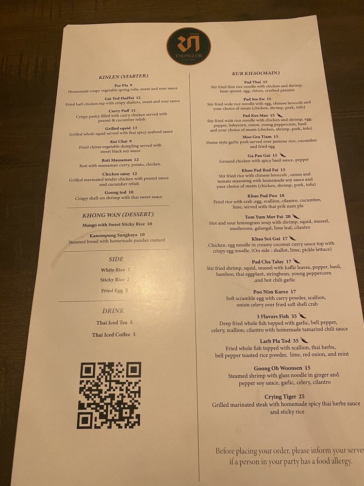 Thonglor, a trendy cocktail bar in Brighton, MA, offers a mix of Thai dishes that keep customers coming back for more. The menu features favorites like the Tom Yum Morfai soup, Three Flavor Fish, and the Crying Tiger steak. Customers rave about the flavorful dishes, with highlights including the Pad Cha Talay with perfectly cooked seafood and the Pad See Ew with balanced sweet and savory flavors. The restaurant's casual yet inviting ambiance, efficient service, and wide range of creative cocktails add to the overall dining experience. With dishes like the best Pad Thai in MA and an unforgettable Tom Yum soup, Thonglor stands out as a top-notch Thai spot worth visiting again.